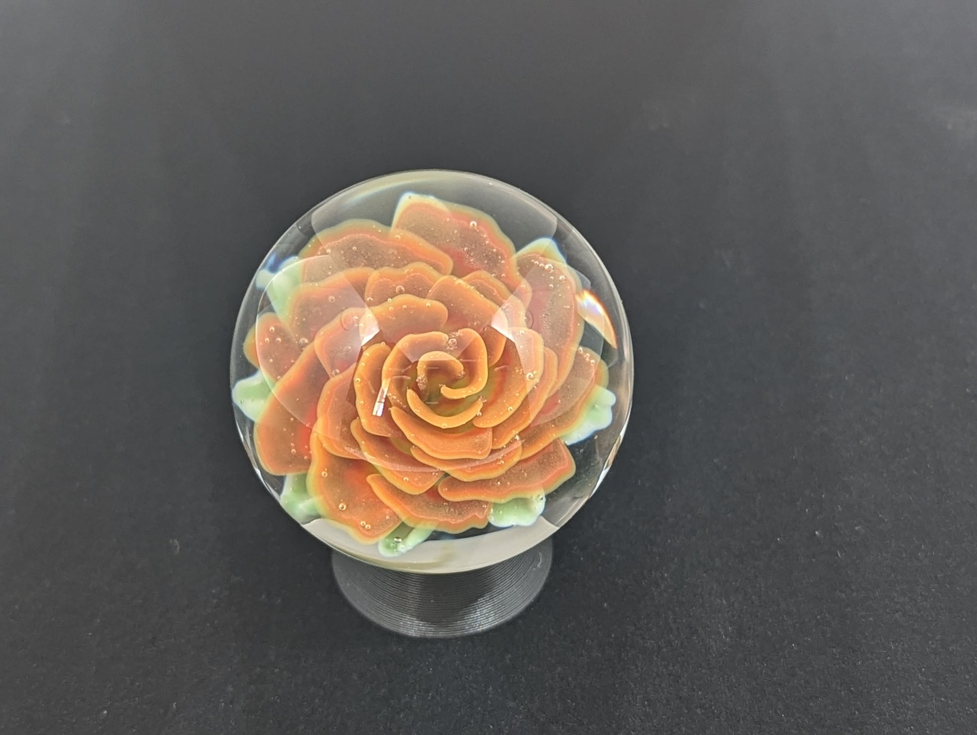 Handmade with love and the highest quality borosilicate. These flowers require no light, water, or food and are guaranteed to never wilt! They make fantastic gifts for all occasions, from weddings to holidays and all in-between these flowers are sure to wow anyone. This rose is a blend of Oranges, Reds, and Yellows layered over black.