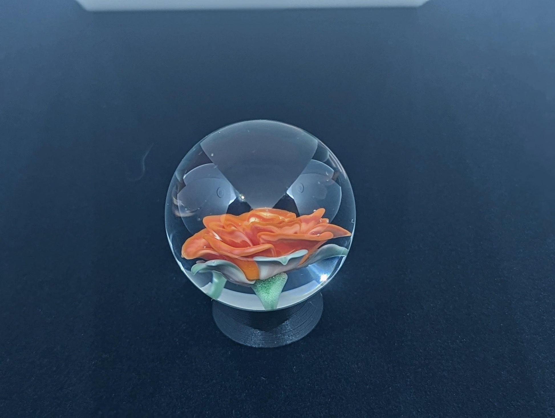 Handmade with love and the highest quality borosilicate. These flowers require no light, water, or food and are guaranteed to never wilt! They make fantastic gifts for all occasions, from weddings to holidays and all in-between these flowers are sure to wow anyone. This rose was made with an inner core of pink, covered first with orange and then cherry red glass.